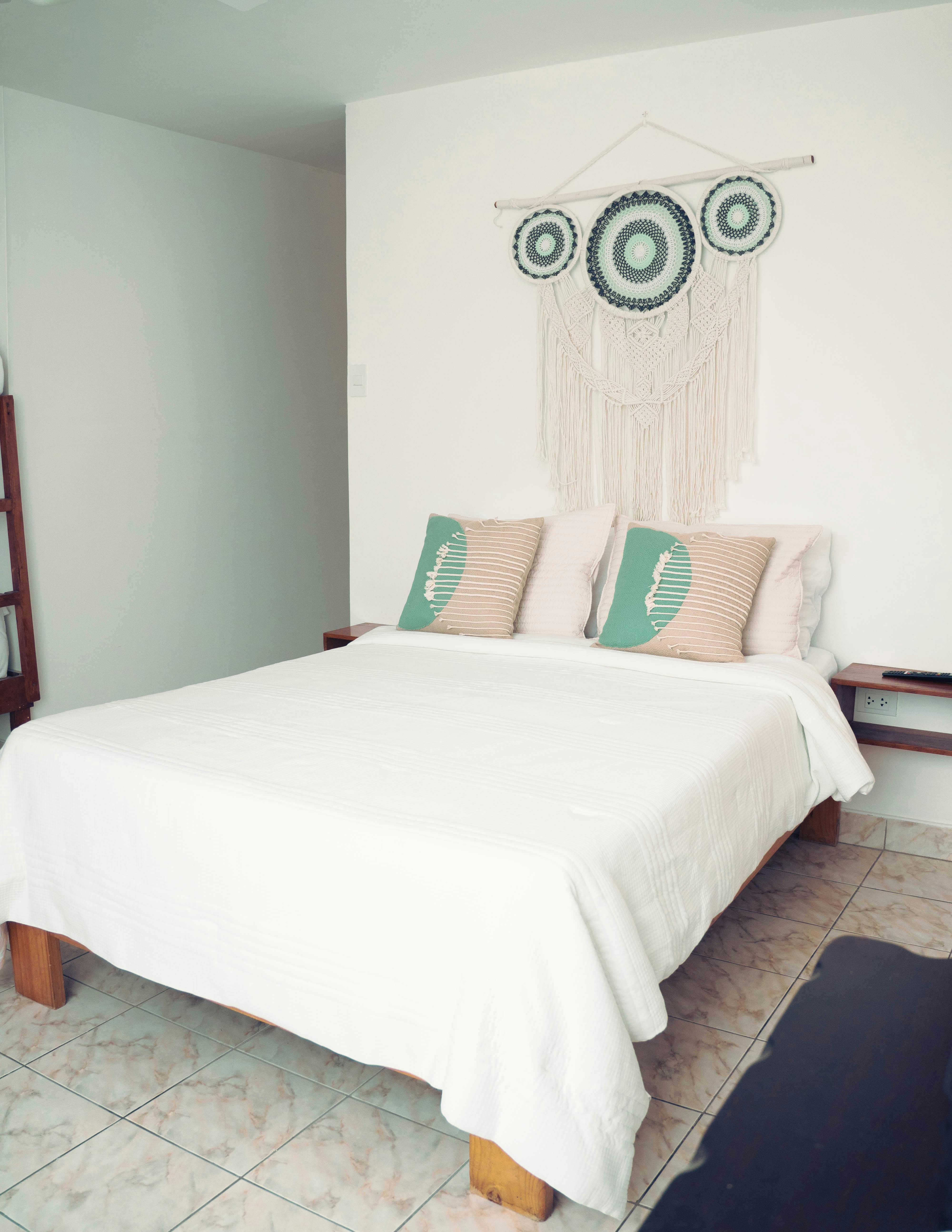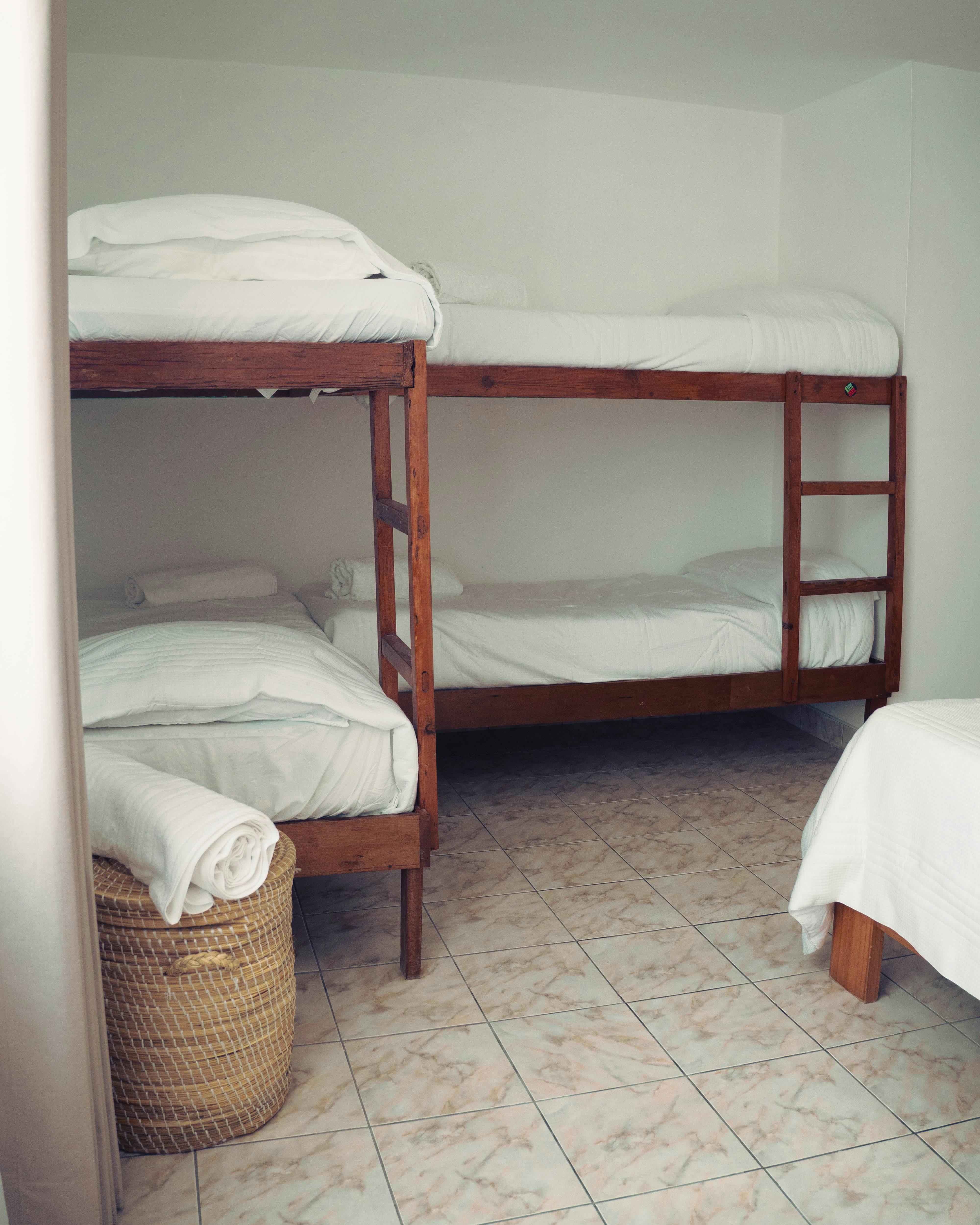 Habitación familiar con cama queen más literas, mesa de desayuno, baño con ducha y agua caliente, Televisor LCD 32" y Wi-fi.